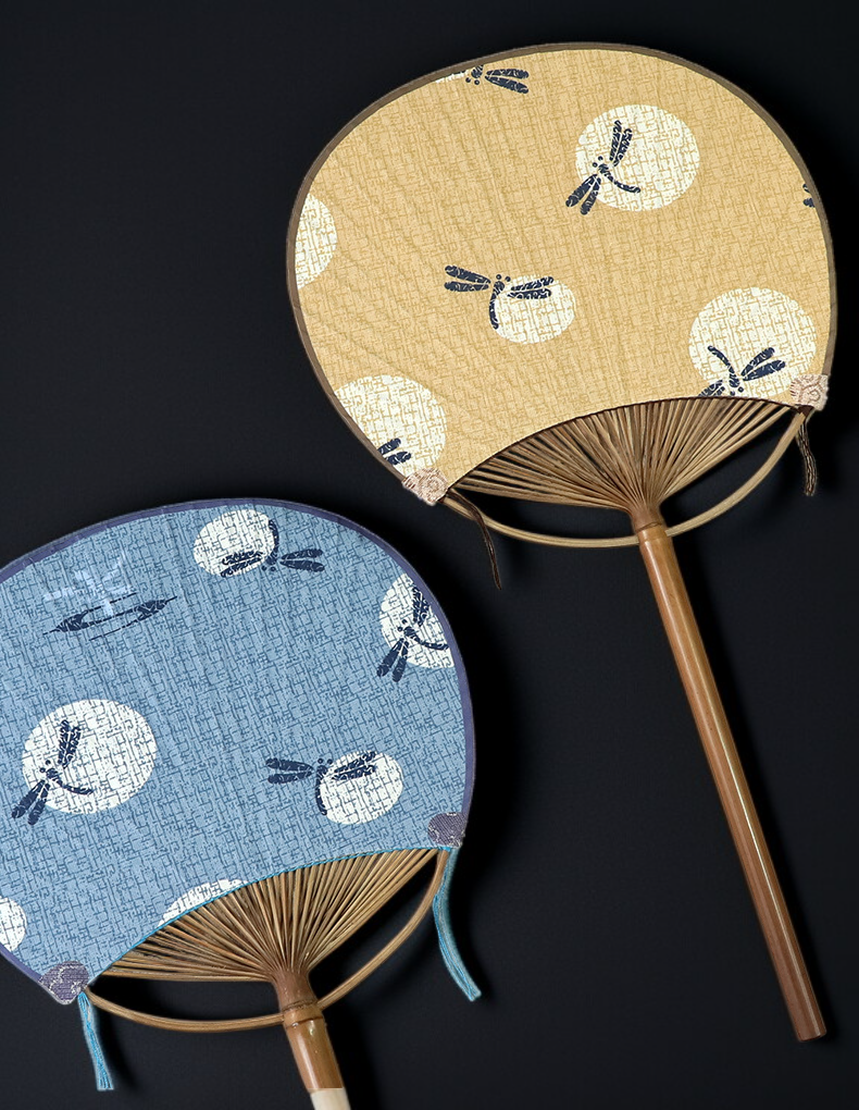 手作りの古い青い布生地を使用した扇子。伝統的な工芸技術で仕上げ、耐久性と美しいデザインが特徴。日常使いやギフトに最適。