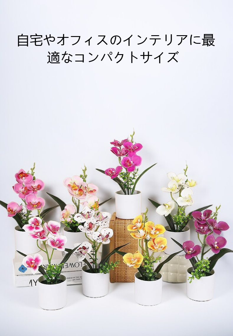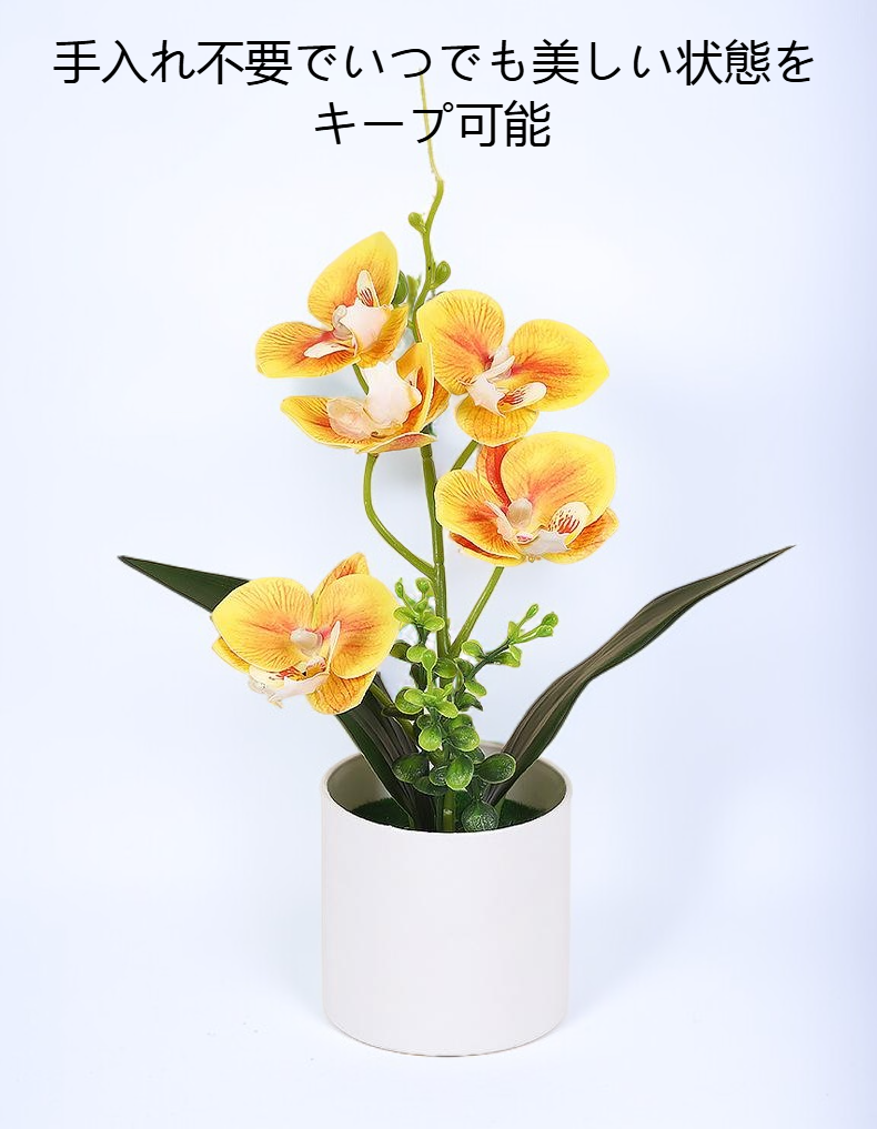 リアルな胡蝶蘭模造鉢植えは手入れ不要で長期間美しさを維持。インテリアやギフトに最適。